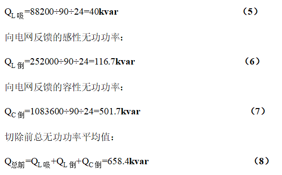 根据表一数据,计算切除电容器前进线413间隔各种无功功率平均值为: