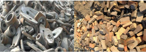 图:伊钢废弃的钢包滑板 图:伊钢废弃的炼钢保温粘土砖