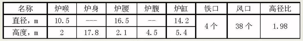 太钢现有2座4000m3级的大型高炉(5号、6号),分别于2006年10月13日和2013年11月7日投产。高炉在生产一段时间后,有一个从设计炉型向操作炉型转变的过程。设计炉型趋于合理,炉内煤气流和料流运动顺利、接触良好,煤气的化学能和热能利用程度高,炉衬侵蚀均匀,炉衬温度分布合理,高炉生产指标好且高炉长寿,即为合理操作炉型。太钢从炉内煤气流分布、炉体各段温度和热负荷分布、冷却水温差,以及炉况稳定性表征参数等,来分析影响其大高炉操作炉型的因素及合理操作炉型的特点,并提出调整操作炉型的措施。太钢大高炉主要设计参数见表1。