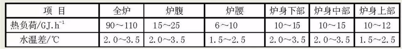 高炉5段炉型结构是与高炉炼铁工艺原理相适应的,具体炉型尺寸比例是由高炉冶炼规律决定的。高炉在正常生产过程中不但要重视炉内压量关系的适应性,而且要长期关注炉腹至炉身上部各段热负荷和水温差分布情况及趋势,尤其是炉腰区的热负荷和水温差情况,要将热负荷分布及波动情况与炉内压差、下料和热制度稳定性等主要炉况表征参数结合起来,判断操作炉型的合理性。
