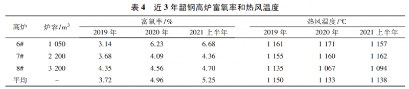 ⑶尝试高炉大富氧技术的突破,进一步优化高炉指标,提高竞争力和生命力。