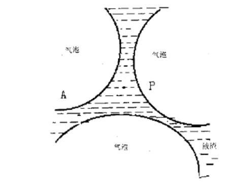 脱碳反应开始后产生的CO/CO2气体在穿透渣层逸出过程中,熔解的渣液成为气体的液膜,由2CaO·SiO2,3CaO·P2O5[1、2、3],MgO,MgO·SiO2等悬浮物质点分割开,随着气体的不断逸出进入渣液的液膜, 形成一个个气泡,气泡压力的增大,熔解的渣液体积随着气体的膨胀变大到几十,甚至上百倍,这是转炉泡沫渣形成的原理,其基本原理图见下图1[1]。