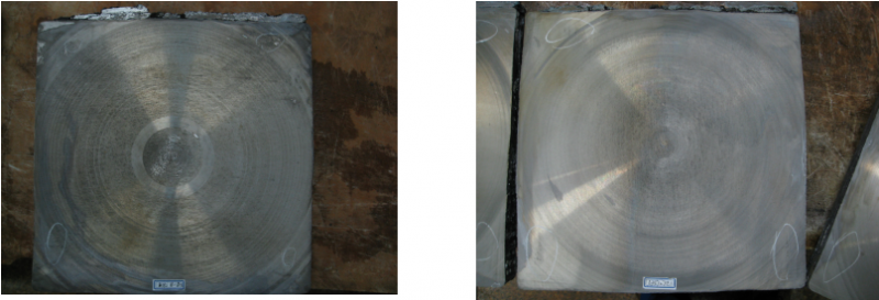 通过对设备整改,以及对水系统调整后轧制材的典型低倍照片如下图: