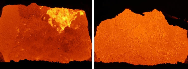 转炉溅渣结束炉膛温度为1400~1450℃,这样的温度下,溅渣层显然不能完全凝固结晶,只是处于熔融状态,也就不存在溅渣理论中的分熔现象,无法形成良好的溅渣层,在生产节奏紧连续炼钢的情况下,炉内的钢渣很快就将处于熔融状态的溅渣层冲刷掉,表现出来就是溅渣层不抗侵蚀,不能很好的保护炉衬。