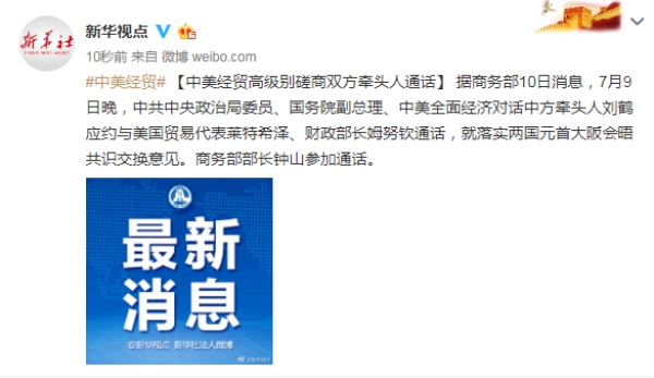中美经贸高级别磋商双方牵头人通话