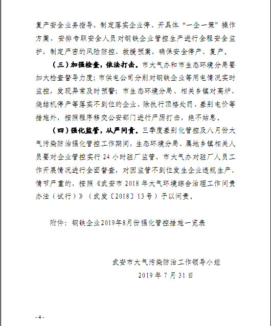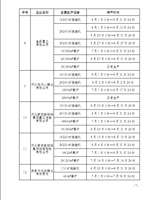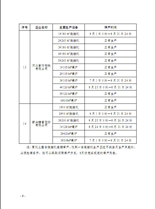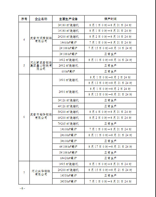而从高炉限产情况看,绝大多数高炉限产力度与7月初限产方案一致,仅有3家钢企出现调整。其中一家增加了限产力度,而另外两家限产力度略有放松。粗略计算,按照新的限产方案执行的话,8月份武安地区粗钢产量将比原计划仅增加6万吨左右,对市场实际影响并不大。