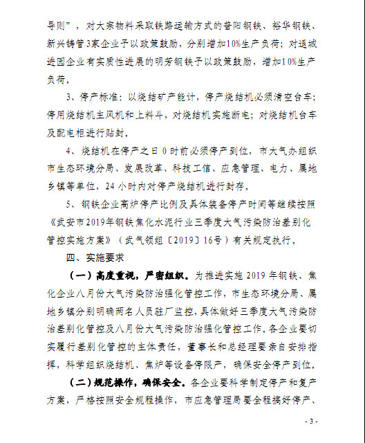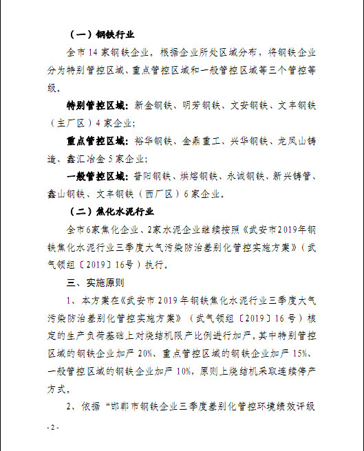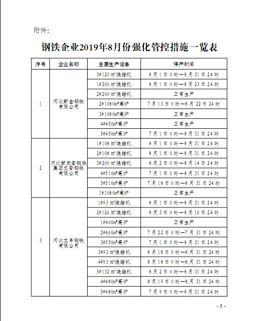 据了解,新的方案中,根据企业所处区域,将钢企分为特别管控区、重点管控区和一般管控区(根据与市区距离远近而划分),并且对该区域的钢企的烧结机限产力度较旧方案分别增加20%、15%和10%。