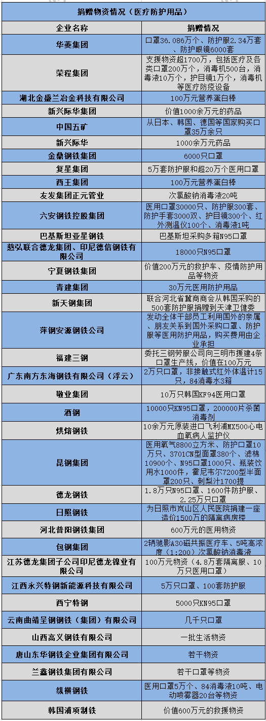 众志成城 钢企“战疫”全名单(截止2月10日)