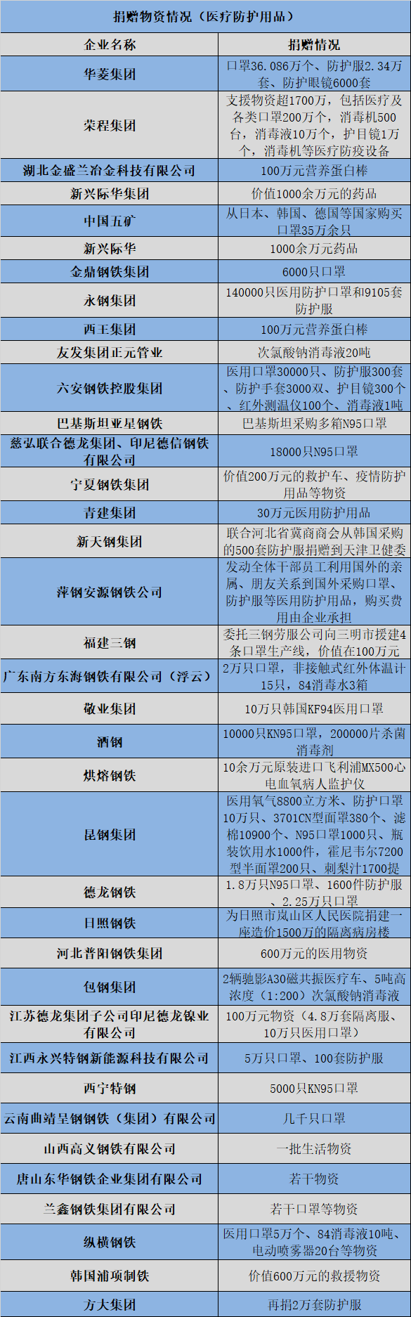 众志成城 钢企“战疫”全名单(截止2月14日)