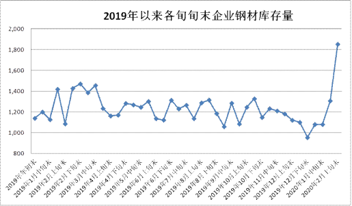本旬,重点统计企业钢材库存量为1851.47万吨,比上一旬增加544.72万吨,增幅41.69%;比年初增加898.22万吨,增幅94.23%。