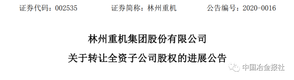 《公告》称,林州重机集团股份有限公司(以下简称“公司”)于 2019年12月13日召开第四届董事会第二十五次(临时)会议和第四届监事会第二十一次(临时)会议,审议通过了《关于转让全资子公司股权的议案》,同意公司将持有的林州重机林钢钢铁有限公司100%股权对外转让。