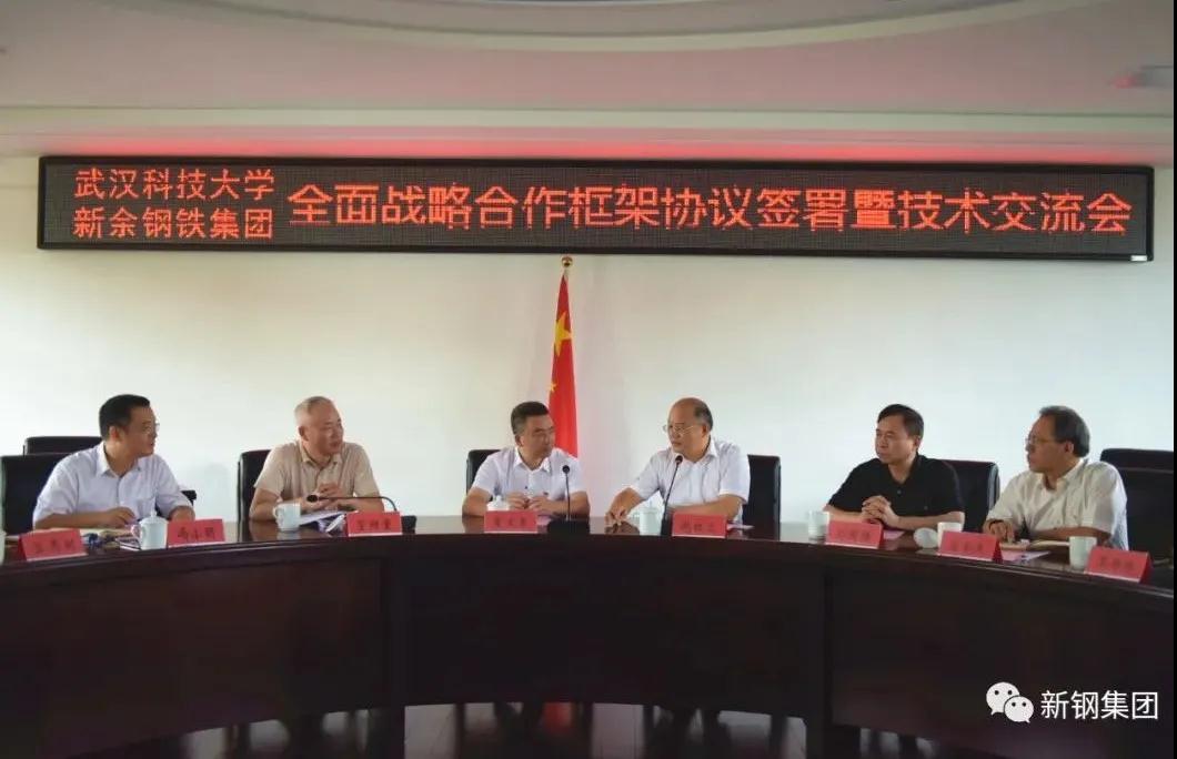 公司党委书记、董事长夏文勇在签约仪式上致辞。他在致辞中说,新钢公司与武汉科技大学都是因中国钢铁的发展而于1958年创建,武汉科技大学为新钢的发展提供了重要的技术支持,并为新钢输送了许多优秀人才。新钢近几年抓住机遇,取得了较好绩效,但始终保持着强烈危机感,坚定推进转型升级以实现高质量发展。目前,新钢将智能制造作为实现高质量发展的关键支撑,并由此积极开展与包括武汉科技大学在内的多个高等院校及科研单位开展合作,以科技进步为抓手,促进企业发展模式的转变。相信新钢与武汉科技大学签署全面战略合作框架协议,将有效推动新钢在科技创新、智能制造、人才培养等方面取得进步,助推企业实现转型升级高质量发展。