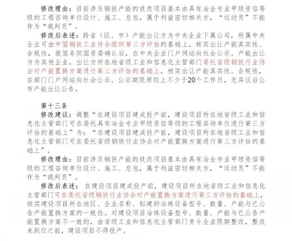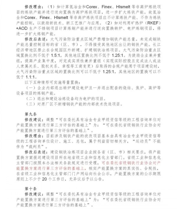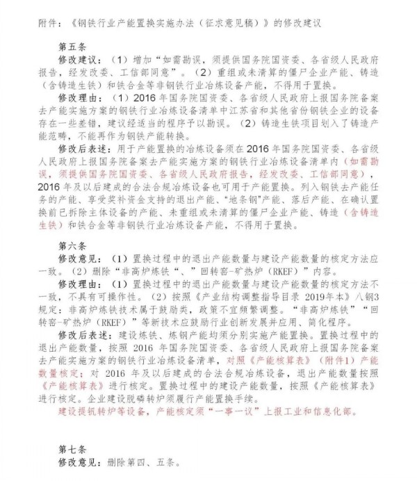 《钢铁行业产能置换实施办法(征求意见搞)》的修改建议