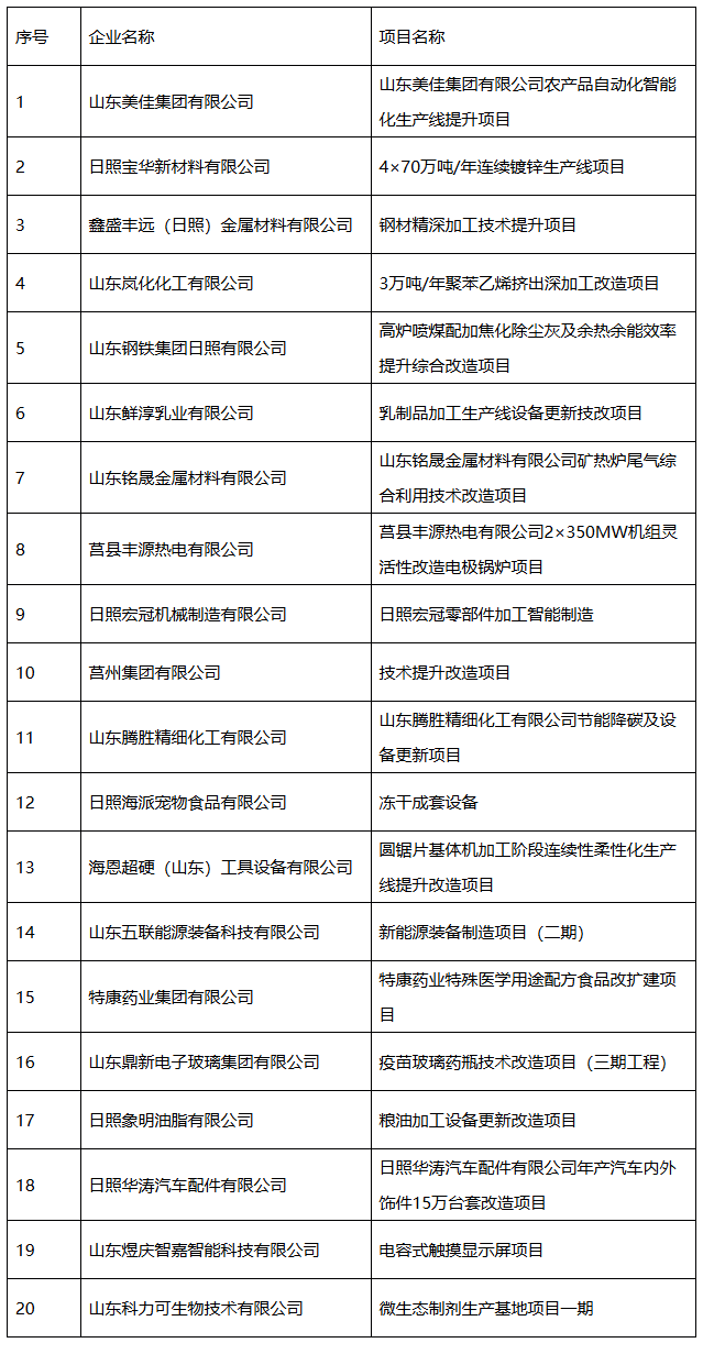2025年日照市工业领域设备更新和技术改造奖补资金拟支持项目名单