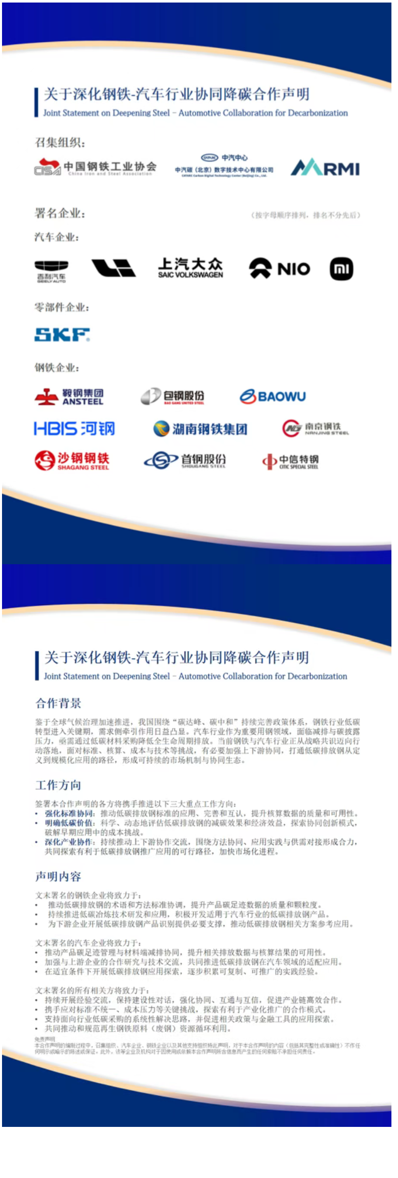 关于深化钢铁-汽车行业协同降碳合作声明: