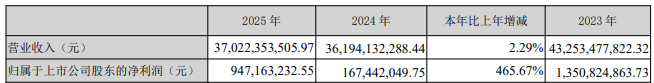 核心提示:新兴铸管披露2025年年度报告。2025年,公司实现营业总收入370.22亿元,同比增长2.29%;实现净利润9.47亿元,同比增长465.67%。