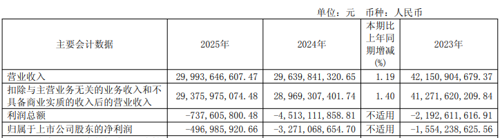 核心提示:安阳钢铁公布2025年年度报告,报告期内,公司实现营业收入299.94亿元,同比增加1.19%;归属于上市公司股东的净利润为-4.97亿元。