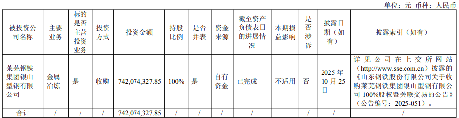 1.公司与同受山钢集团控制公司莱钢集团签订股权转让协议,收购银山型钢 100%股权,2025年11月完成股权交割,银山型钢成为公司全资子公司,自2025年11月纳入合并范围。