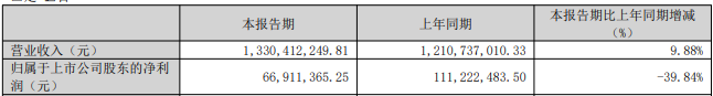 核心提示:常宝股份公告称,公司2026年第一季度实现营业收入13.30亿元,同比增长9.88%;归属于上市公司股东的净利润0.67亿元,同比下降39.8