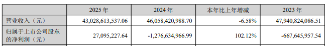 三钢闽光发布2025年年报显示,公司全年实现营业收入430.29亿元,同比下滑6.58%;实现净利润0.27亿元,同比扭亏为盈。