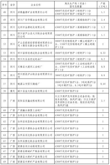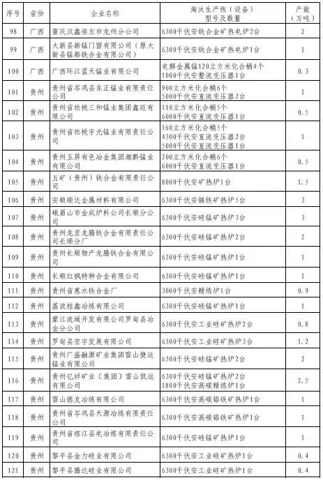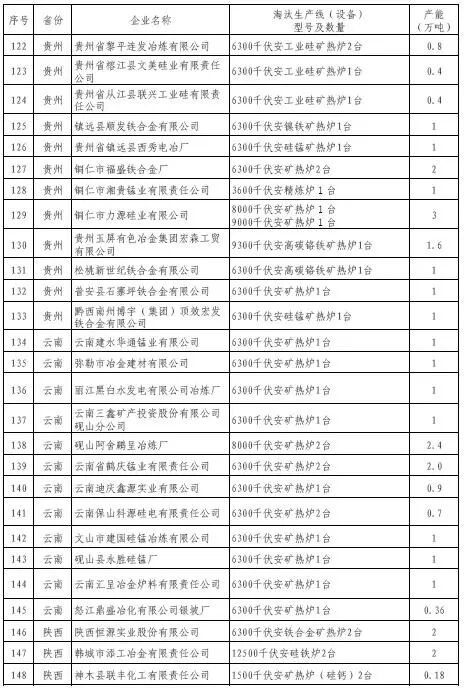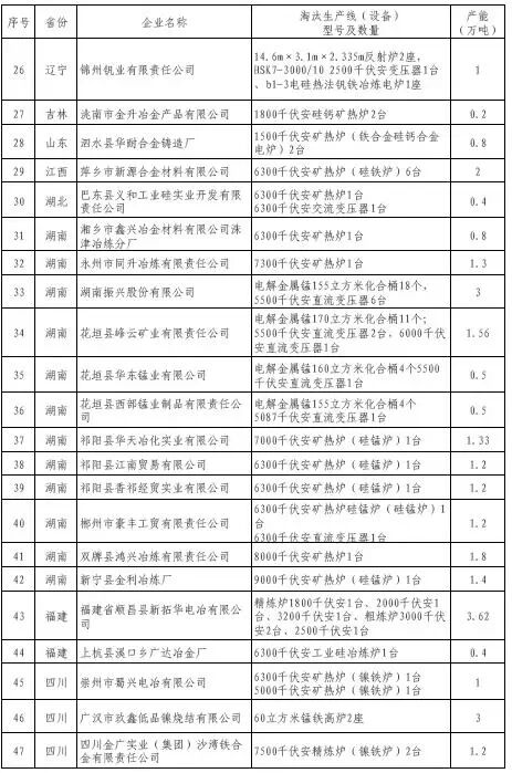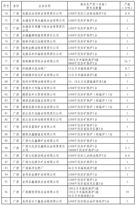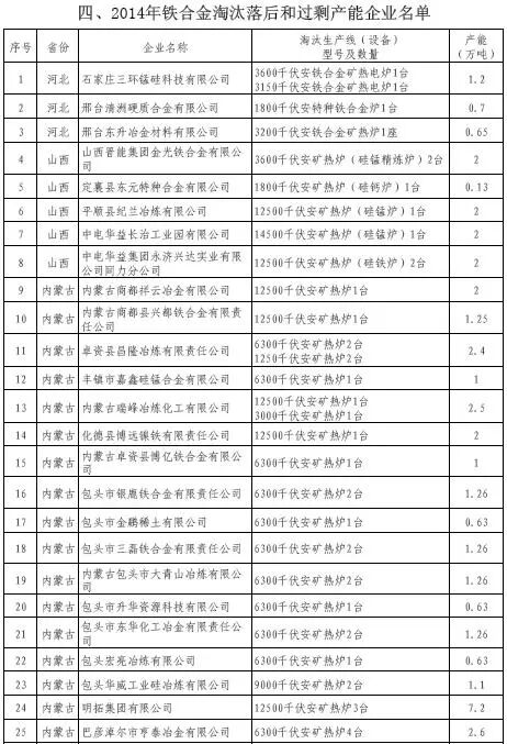 四、2014年铁合金淘汰落后和过剩产能企业名单