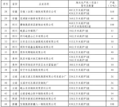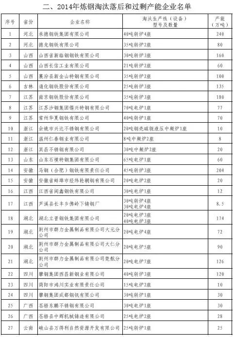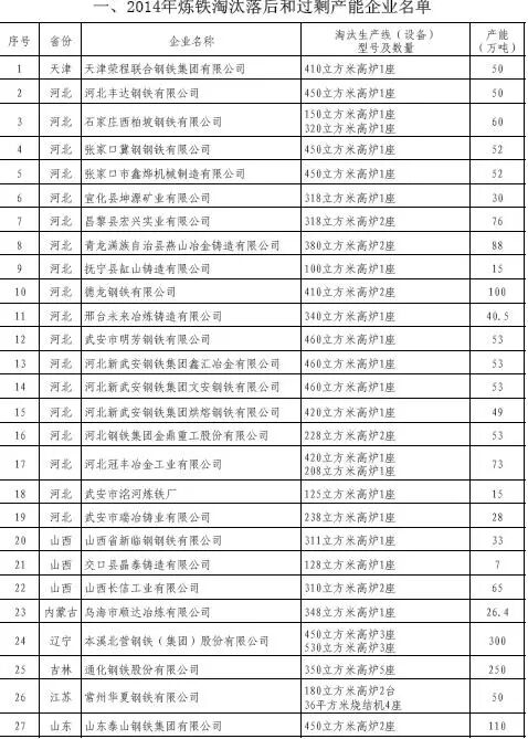一、2014年炼铁淘汰落后和过剩产能企业名单