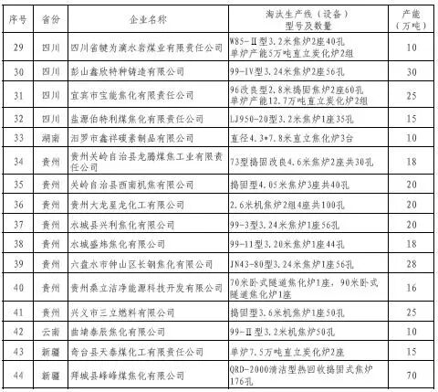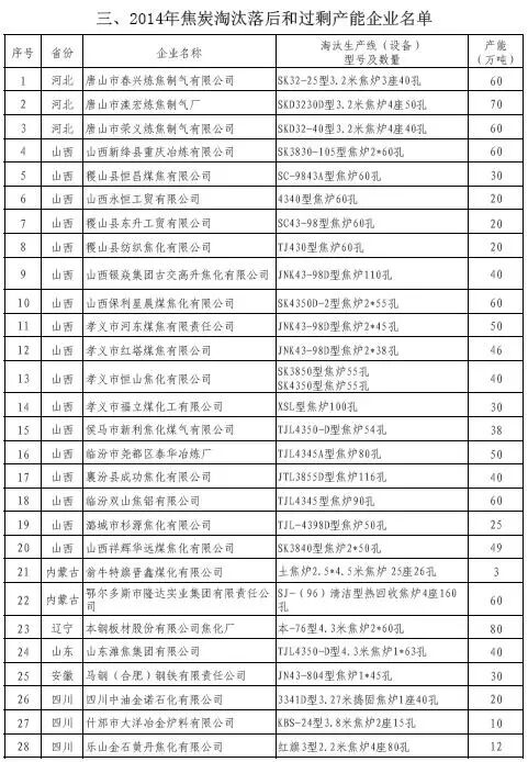 三、2014年焦炭淘汰落后和过剩产能企业名单