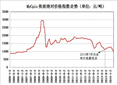 我们知道,焦炭是作为钢铁产业链上除铁矿石以外,需求量最大的原材料品种之一,今年以来受到钢铁行业疲软的影响,价格正在经历一轮单边下跌的行情。据我们Mysteel焦炭频道价格监测数据显示,自2014年1月份以来焦炭价格已经累计下跌300元/吨,幅度达到37.5%。这种价格水平实质上已经比08年金融危机时的价格还要低,已经回归到了05-06年。不过最近焦炭价格在经历几波大幅调整之后,跌幅出现放缓迹象。