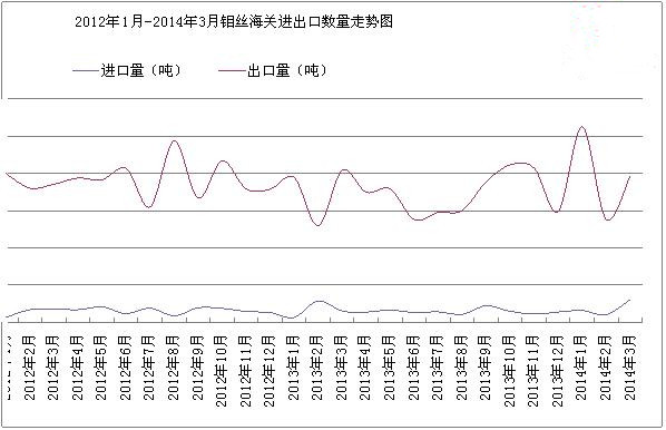 一,2014年3月国内钼丝进口量增加,出口量增加