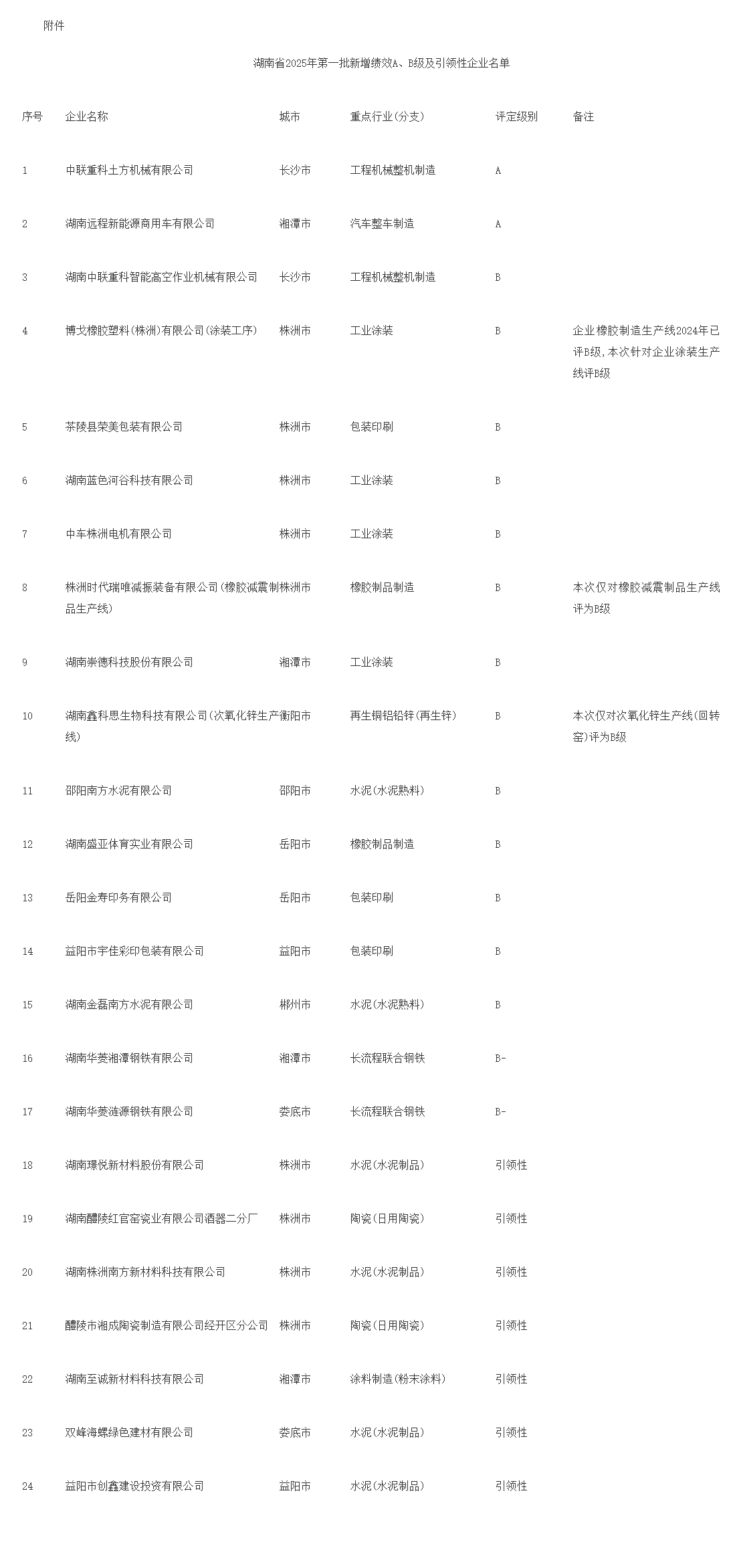 附件:湖南省2025年第一批新增绩效A、B级及引领性企业名单