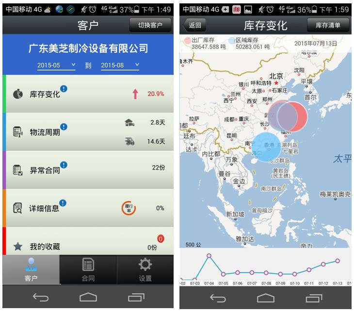 通过信息系统,下面那些气泡图扩展显示用户的实物库存分布明细。这里,梅钢的责任感站岗。