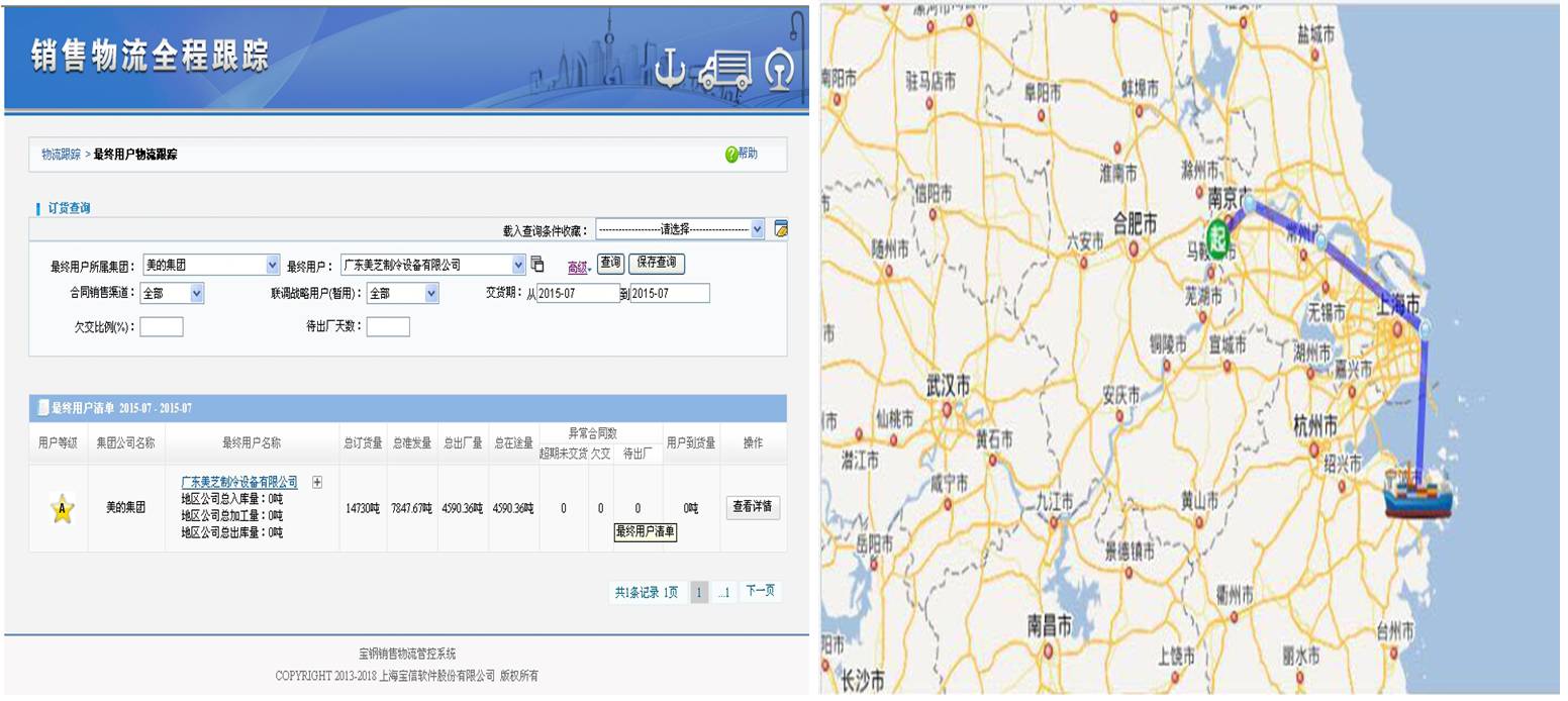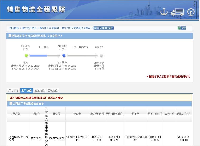 通过信息系统,通过GPS,用户与梅钢都可以对订单产品及运输船舶的在途信息进行实时跟踪。