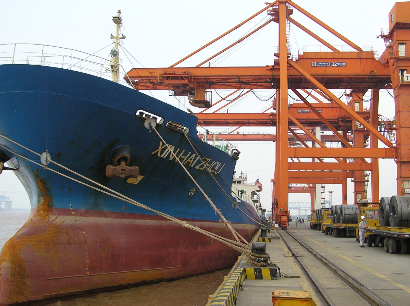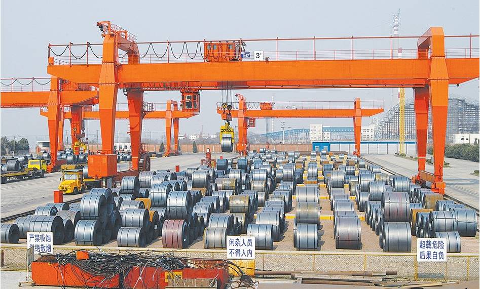 经过厂内物流,用户订单产品在梅钢产成品码头装船,要开始一段不同于汽运的旅行了。